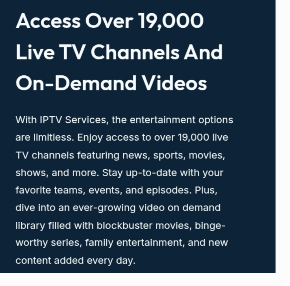 Discover our affordable IPTV service with a vast array of international channels and exclusive pay-per-view events.